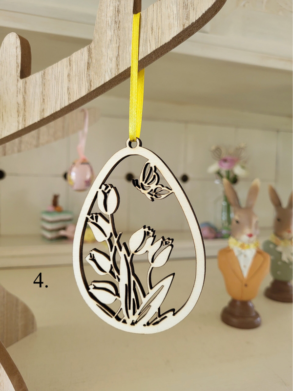 De Paashangers zijn gemaakt uit populierenhout van 4mm dikte.